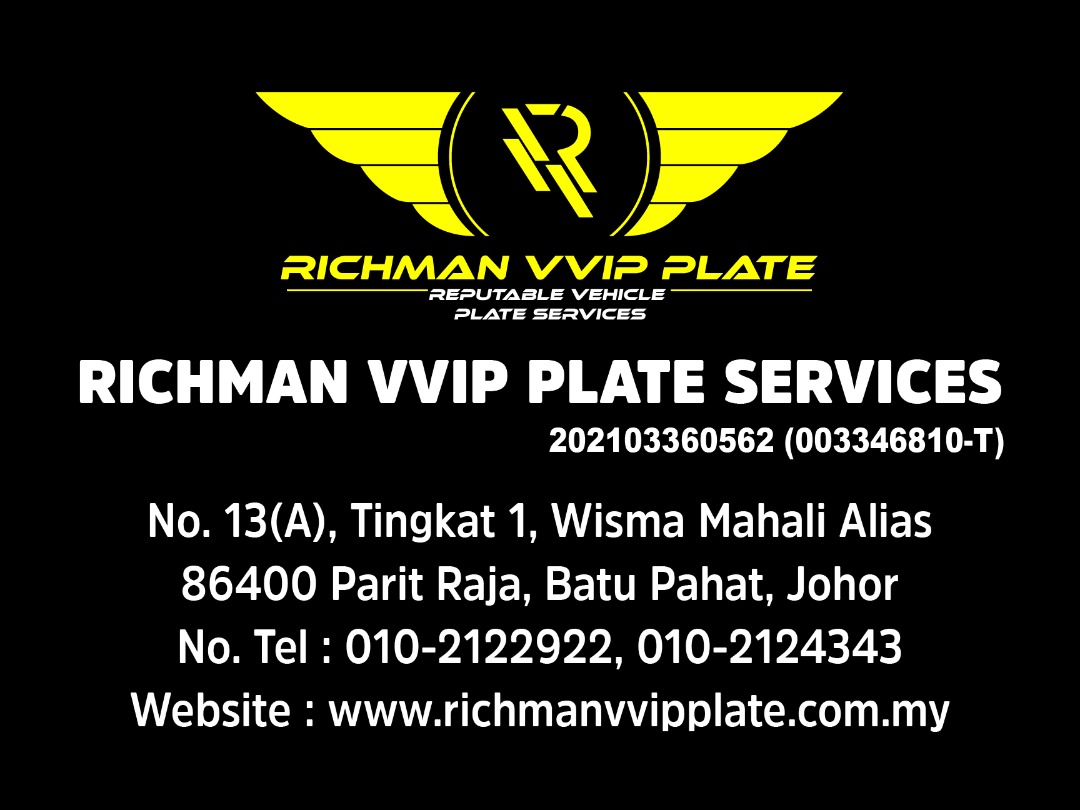 RICHMAN VVIP PLATE SERVICE has been in the vehicle plate industry since 2015, rapidly becoming Malaysia’s trusted online service for plate numbers. Now, we’re a reputable vehicle plates organisation with a good reputation and trustworthy qualities. To “Complement Your Dream Vehicle with Exclusive Plate Number”, this is our vision. Our mission is to be the centre of the vehicle plate numbers collection (VVIP, Classic, Special & Fancy Plate Numbers).